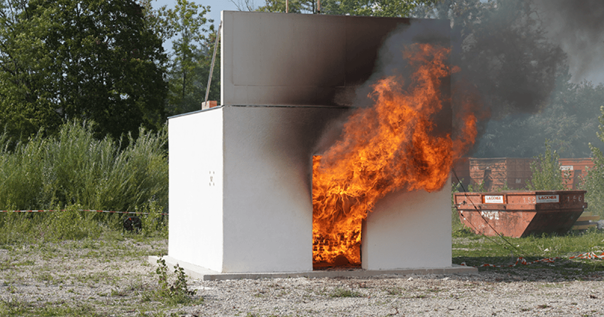 Bereits im Vorfeld war derselbe Kubus einem Naturbrandversuch mit 90 Minuten und voller Deckenlast unterzogen worden. Auf Basis dieser Erfahrungen konnte das Team dem Live-Test bei der Tagung mit ruhigem Gewissen entgegensehen. Der öffentliche Brandversuch bestätigte schließlich die Erwartungen: Die Raumzelle hat den Naturbrandversuch 60 Minuten ohne Probleme standgehalten und für positive Resonanz gesorgt.